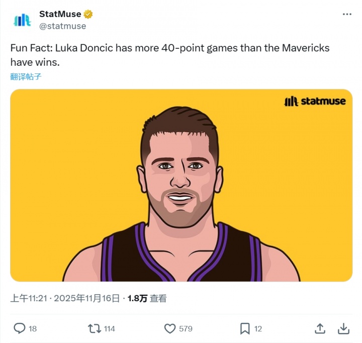 美媒晒数据“杀人诛心”:东契奇本赛季40+次数(4)>独行侠目前的胜场数(3)